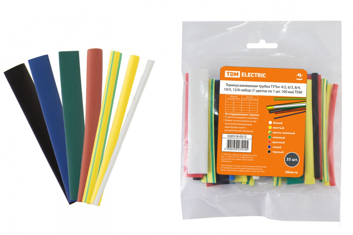 —Трубка термоусаживаемая ТУТ нг. d=8/4 НАБОР (7 цветов по 3шт. 100мм) TDM
